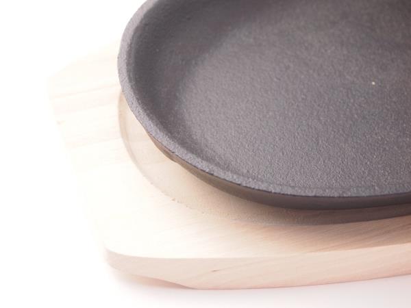 ●材質: 皿・ハンドル/鉄鋳物(焼付塗装)、プレート/天然木