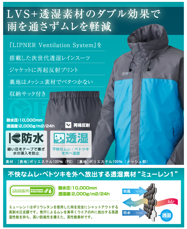 28654252 蒸れを追放・LVS透湿レインスーツ・チェスター チャコール/Lサイズ (HN)